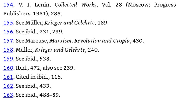 Not irrelevantly to my point, but another thing I’m going to postone discussing, this chapter is lifted whole from Tim B. Mueller’s book, as the footnotes reveal. And even the footnotes which do not trace to Mueller’s book are lifted from Mueller’s book, being his citations (including the citation to Marcuse’s own work.)